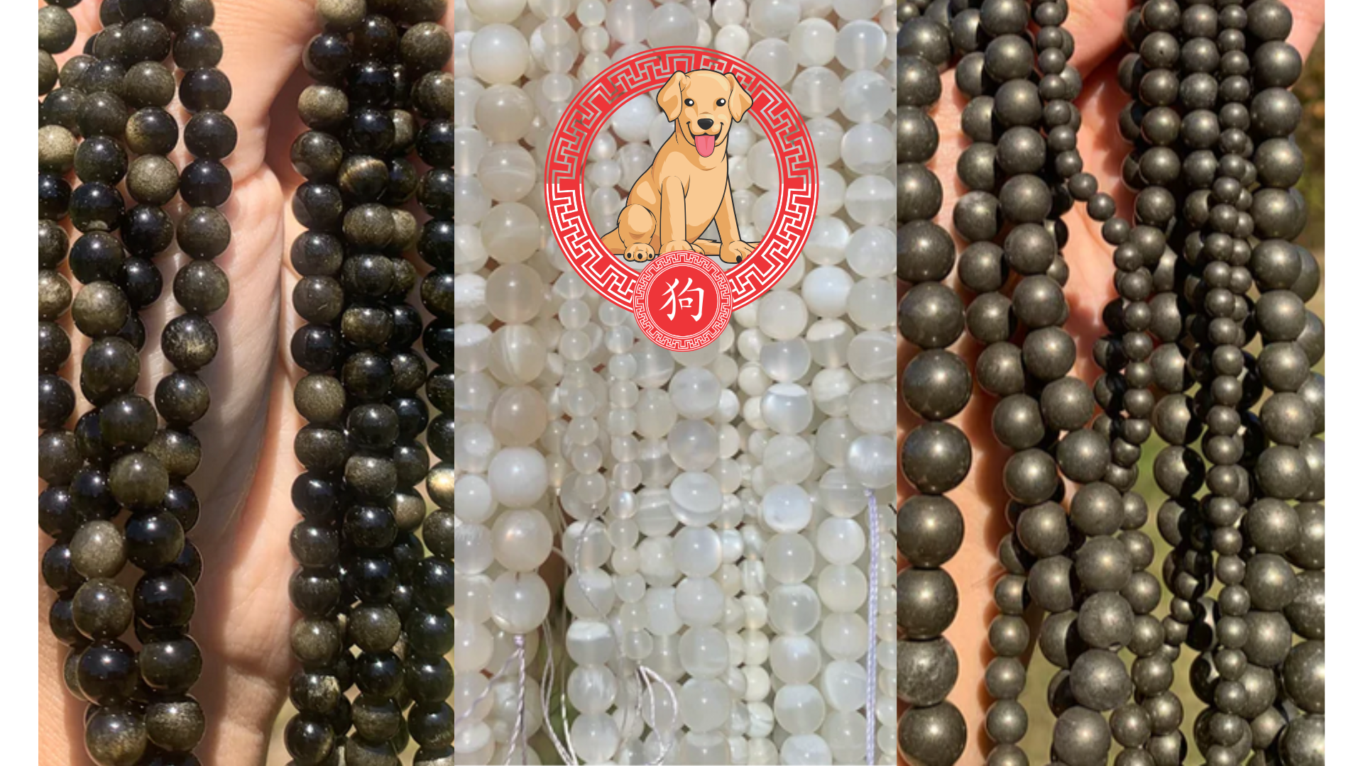 L’Obsidienne Dorée offre une protection puissante et aide à dissiper les doutes et les peurs. La Pierre de Lune Blanche favorise l’équilibre émotionnel et renforce l’intuition, permettant au Chien d’agir avec discernement. La Pyrite apporte force et confiance en soi, soutenant l’ancrage et la résilience.